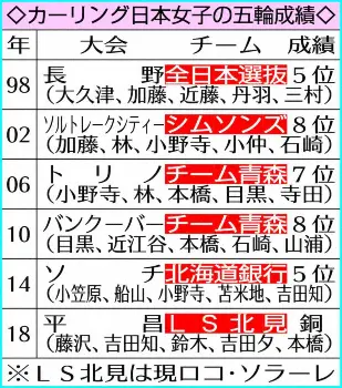 ▽ロコ・ソラーレ チーム青森で06年トリノ、10年バンクーバーの両五輪に出場した本橋麻里を中心に10年8月に創設。競技が盛んな北海道の旧常呂町(現北見市)が拠点で「太陽の常呂っ子」を意味する造語「ロコ・ソラーレ」をチーム名にした。当初はLS北見の名称を使用していたが、18年に法人化したことでロコ・ソラーレとして試合にも出場するようになった。