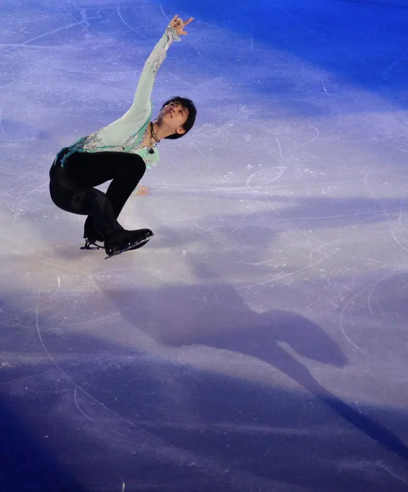 15年全日本選手権を制してエキシビションで舞う羽生結弦(撮影・長久保豊)