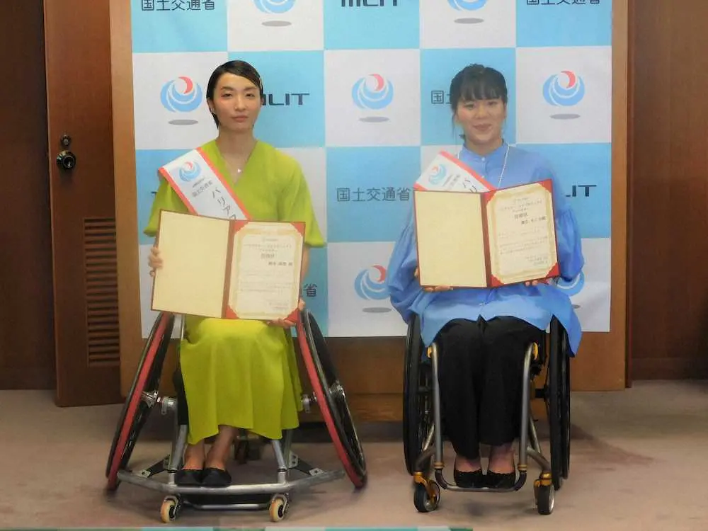 国土交通省が推進する「バリアフリー・ナビプロジェクト」のアンバサダー就任式が21日、都内で行われ、東京パラリンピックカヌー女子日本代表の瀬立モニカ(24=江東区協会)と、車いすバスケ女子日本代表の網本麻里(33=ビームス)が任命された。