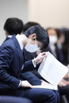 ▽6:38 諸注意の説明が終わると拍手。その後、書類に目を通す。