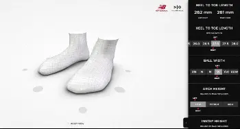 ○…ニューバランスのオフィシャルストア全店では、360度から足を計測する「3Dスキャン」が導入されている。足の形状は、長さ、幅、土踏まずの高さなど、人それぞれに異なり、自分の足を知ることがフィットしたシューズを選ぶコツになる。記者も実際に計測を体験した。データを見ると、足のサイズは左が26・2センチで右が26・1センチ。普段は26・5センチのシューズを履いているが、松野氏によると「そこに0・5~1センチを加えた長さがお勧め」ということで、適正サイズは27センチということが判明した。他には足幅が日本人に多いワイド、土踏まずの高さはローアーチ(低め)ということなども分かった。これらのデータを踏まえ、スタッフがお勧めのモデルをアドバイスしてくれる。計測は無料で、データはパソコン、携帯電話への転送が可能。松野氏は「計測するだけでもご来店していただければ。今後利用するときの参考になります」と話した。