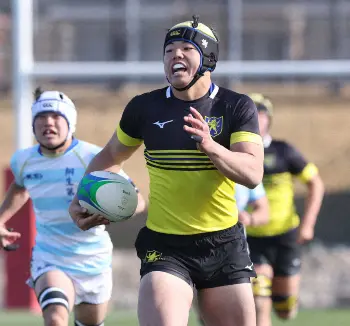 同25分過ぎには相手がサインプレーで内側へ返したパスをFL最上太尊(たいそん)がインターセプトし、一気にトライ。ボクシングの名王者マイク・タイソンにちなんだ名を持ち、前半終了間際、後半25分と計3トライを決め、「チームとしてのアタックがうまくできた。みんなが前へ出てくれたので、一丸になって取れたトライはうれしかった」とうなずいた。
