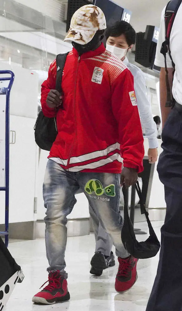成田空港でチェックインし、帰国の途に就くウガンダのジュリアス・セチトレコ選手