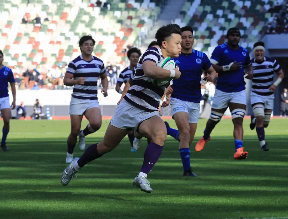 本年度の明大は言葉の力を借りてきた。毎試合ごとに定めるテーマに、この日は「ノーリミット」と設定。前半最後の10分と後半最後の20分を「メイジタイム」と呼び、ピッチ内外で声を掛け合いプレーを引き締めた。逆転劇が生まれたのも、まさに残り20分から。対抗戦で帝京大、早大に敗れてから一戦ごとにチームが成長する姿を見てきた指揮官も「一人一人、頼もしく映るシーンが多くなってきた」とうなずいた。