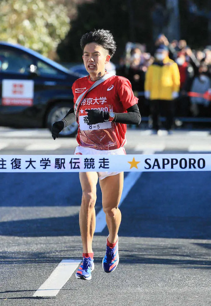 2位でゴールする帝京大・細谷(撮影・尾崎 有希)