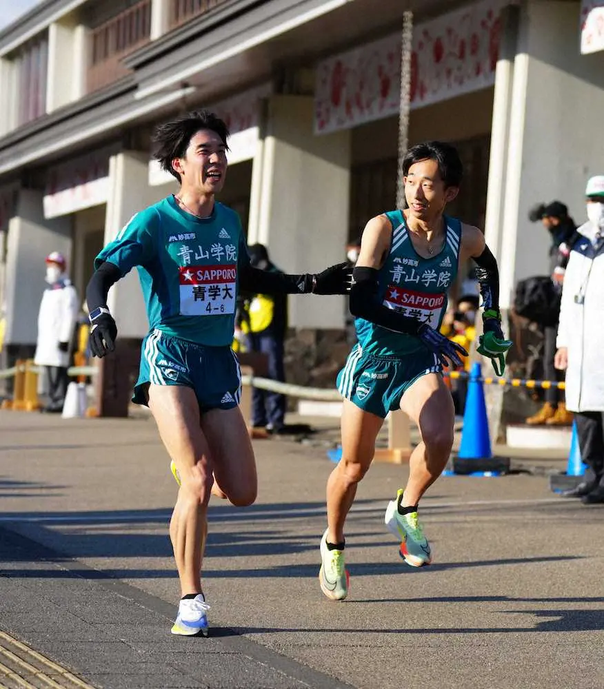 3位でタスキを受けた順大の西沢侑真(3年=浜松日体)が10キロ過ぎに、駒大の白鳥哲汰(2年=埼玉栄)を抜いて2位に浮上。しかし19キロ手前で白鳥が再び抜き返し、2位でリレーした。西沢も食らいつき、1秒差でタスキをつないだ。