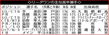 ラグビーの新リーグ「リーグワン」が1日遅れの開幕を迎える。新型コロナウイルスの陽性者が出たことで、7日の東京ベイ―埼玉が中止になったものの、8日には神戸―浦安の“開幕戦”を皮切りに3試合を実施予定。スポニチ本紙ラグビー担当の倉世古洋平は、刷新されたことで高卒選手が増えれば日本代表の底上げにもつながると予測した。チーム数が絞られ熱戦必至の新リーグの“金の卵”に注目を――。