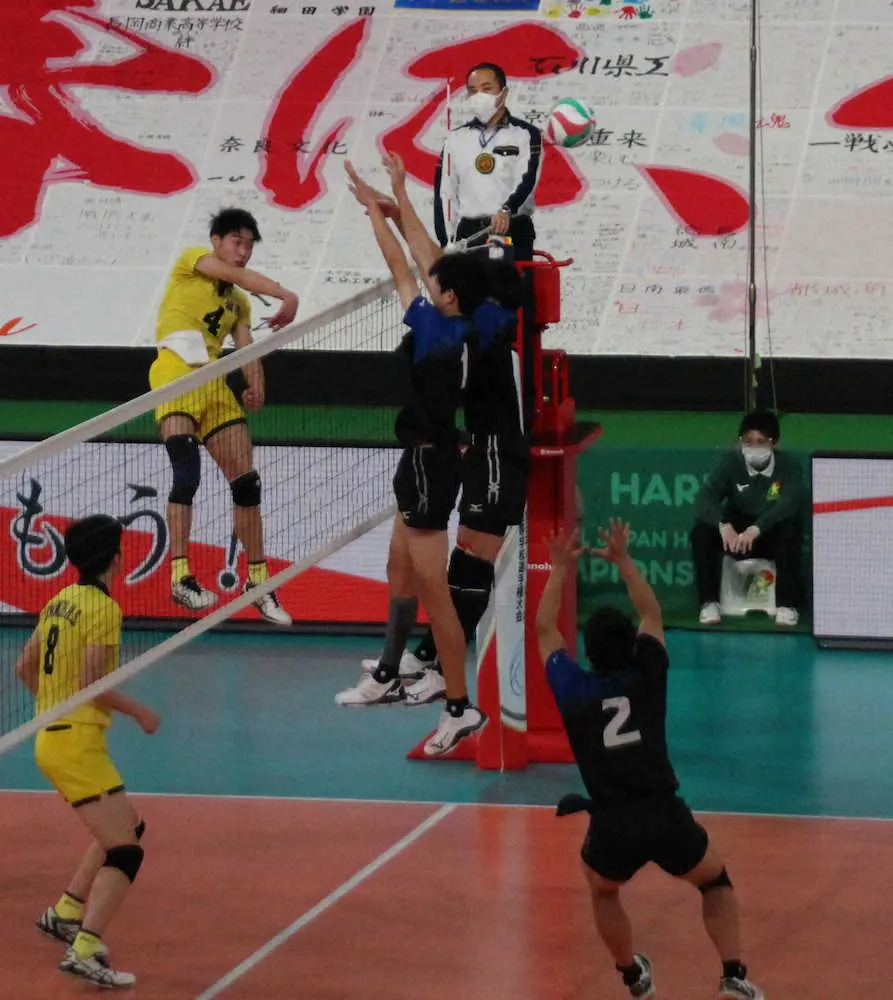 平田は1メートル92の長身からスパイクを28本放ち、14本決めた。ジャンプサーブのエースも1本あった。昨夏の全国高校総体で優勝した後、畑野久雄監督が2冠へのキーマンになると期待していた成長株だ。今大会では「2段トスを決めきれるようになった」と手応えを得ている。「自分もエースだから決めないといけない。その気持ちでやってきた」とプライドものぞかせた。