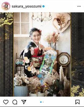 四十住さくら “相棒”手に…艶やか晴れ着ショット披露「新成人代表のスピーチうまく話せるか不安です」