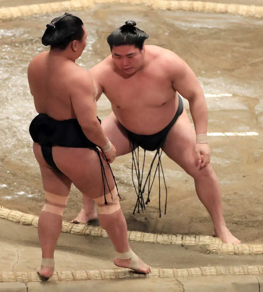 うるさい小兵を慌てずに料理した。若元春は左四つ、右上手で照強をつかまえ、慎重に足を運んで寄り切り。「立ち合いも踏み込み過ぎず、見ていきました。いっぱい手がある相手で内心は怖かったので」と苦笑いした。