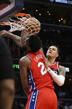 ここ10試合で平均34・8得点を稼ぎ、9試合で30得点以上を記録していたセンターのジョエル・エンビード(27)はこの日も32得点と底力を発揮。しかし2ケタ得点をマークしたのはエンビード以外では18得点のタイリース・マキシー(21)だけで、ベンチ勢もふるわなかった。