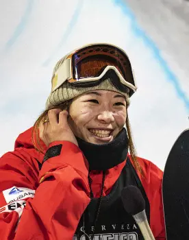 最初の試技の終盤で転倒も「やるしかない」と恐怖心を振り払った。2本目の5ヒット目でフロントサイド1080をクリーンに決めて首位に立った。3本目はさらに難度を上げ、右手を伸ばして板の後ろ端をつかむ「テールグラブ」も披露。スコア非公表の同大会だが、結局2本目以降は首位を守り切った。