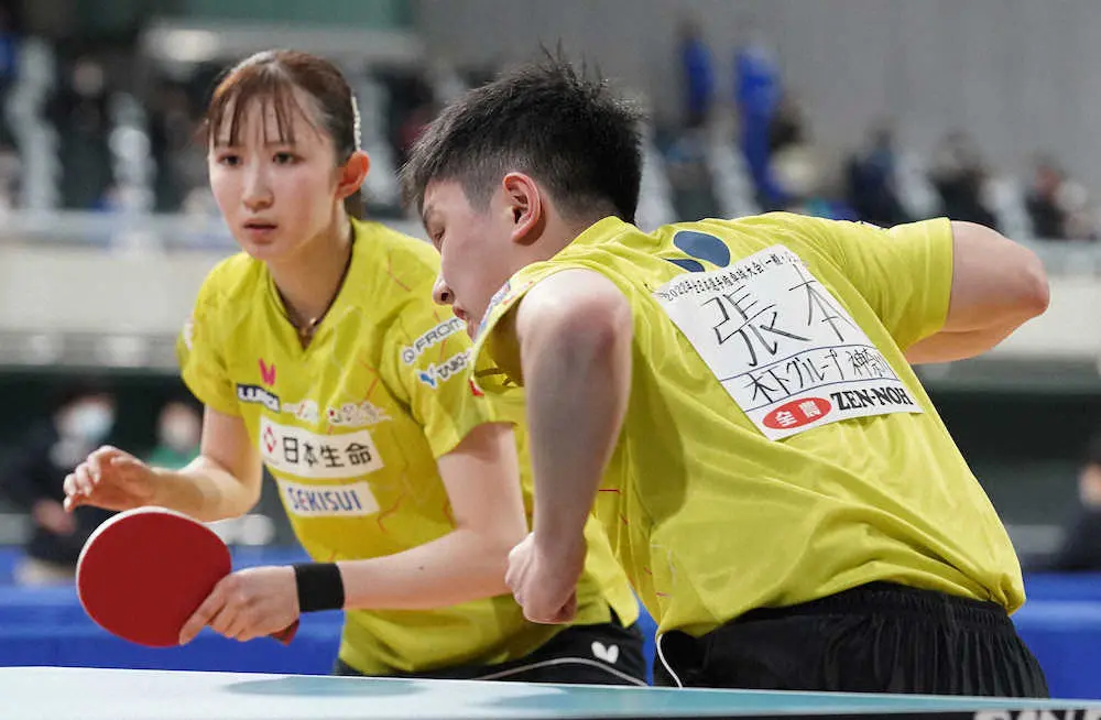 卓球の全日本選手権第2日が25日に東京体育館で行われ、張本智和(18=木下グループ)早田ひな(21=日本生命)組は混合ダブルス4回戦に駒を進めた。