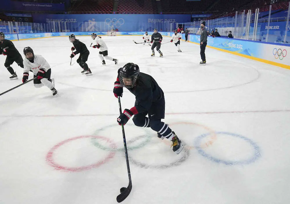 開会式前日の2月3日に行われるスウェーデンとの1次リーグ初戦へ向けて約1時間半、パス交換や実戦形式のメニューをこなした。3大会連続で主将を務めるFW大沢ちほは「日本でやっているより、リンクが1メートルぐらい狭い」と感想を口にし、同じく3度目の五輪となる39歳のFW久保英恵(西武)は「氷は滑りやすい。数回練習して、感覚をつかんでいきたい」と話した。