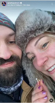 ショーストロムは、ストックホルムの北部で友人たちとスキーやキャンプに来ており、スキーラスが雪原で片膝をつき、プロポーズされた動画を公開。氷点下10度以下の極寒でのプロポーズとあり「最初にまず立ち上がって、風邪をひくからと言ったの。それから『はい』と答えたわ」とつづり、プロポーズで渡されたダイヤのエンゲージリングの写真も投稿した。