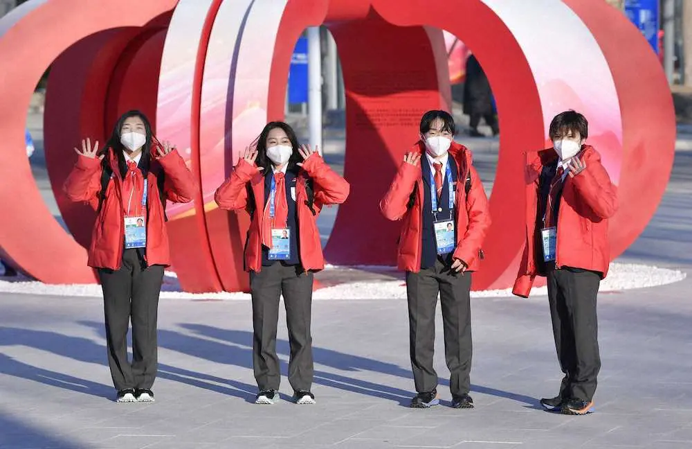 フィギュアスケート男子の宇野昌磨(トヨタ自動車)と鍵山優真(オリエンタルバイオ・星槎)、女子の坂本花織(シスメックス)と樋口新葉(明大)が2日、北京中心部の選手村に入った。4人は羽田空港からチャーター機で出国。赤色のダウンジャケットと紺色のジャケット、灰色のパンツの公式ウエアに身を包み、選手村で報道陣の撮影に応じた。