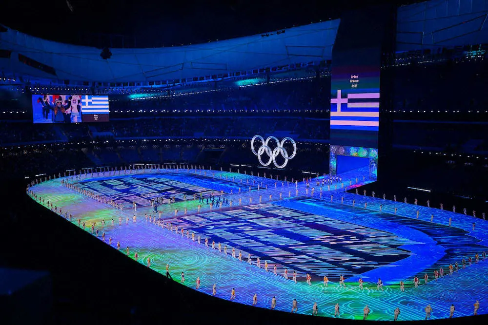 <北京五輪・開会式>ギリシャから入場行進がスタート(撮影・小海途 良幹)