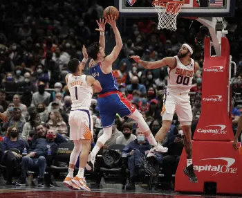 NBAウィザーズは5日、地元ワシントンDCでリーグ最高勝率を誇る西地区全体首位のサンズと対戦したが、80―95(前半32―59)で敗れて24勝28敗。2日の76ersでは3点差で勝って連敗を6で阻止していたが、この日は第1Q終盤からじりじりと点差を広げられ、最大36点差をつけられてホームでは5連敗となった。