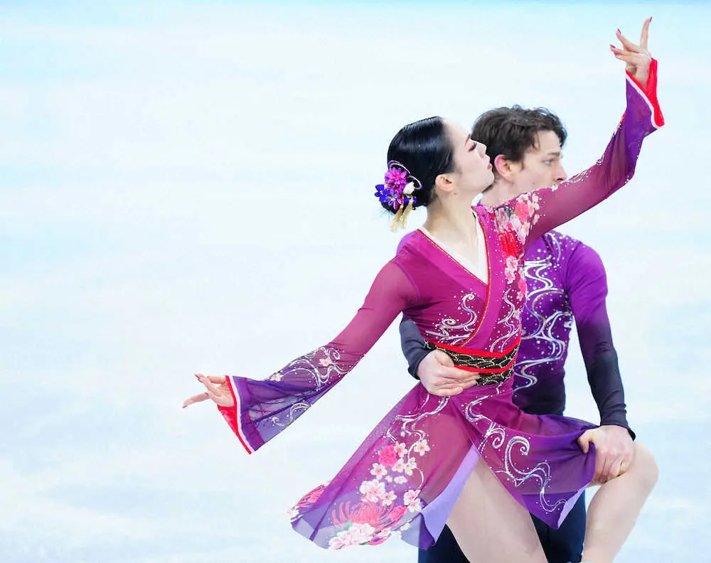 映画「SAYURI」の音楽に乗せて、しっとりと演じた。難所のツイズルをそろえるなど、柔らかく安定感のあるスケーティング。リフトは力強く、スピンはスピードと美しさを兼ね備えた。自己ベストには届かなかったものの、2人の表情は晴れやかだった。