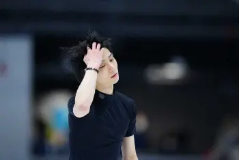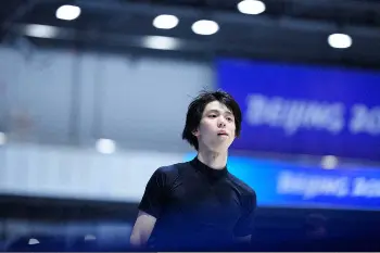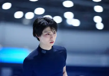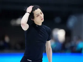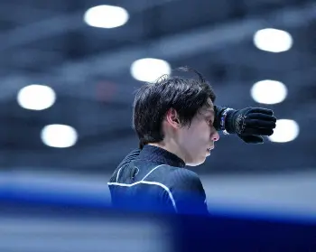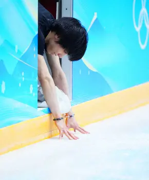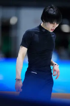 この日の公式練習では「天と地と」を流しての滑走で4回転半の着氷が乱れ、他に回転の抜けや転倒もあった。