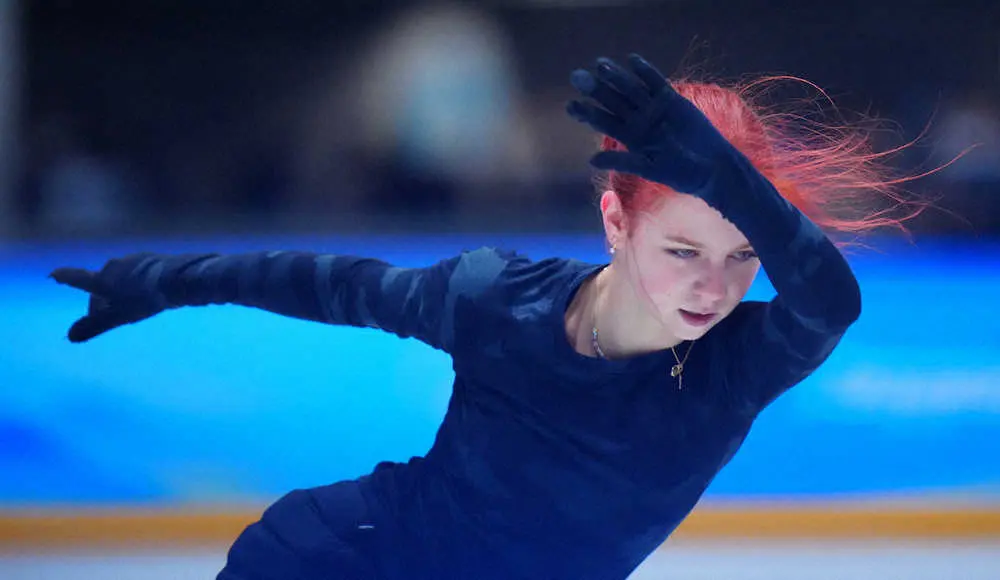 北京五輪フィギュアスケート女子の午後練習が13日、首都体育館近くのサブリンクで行われた。多種類の4回転ジャンプを駆使して日本のファンから“先輩”との愛称を持つアレクサンドラ・トルソワ(ROC)はフリーの曲かけで異次元の構成を完遂した。