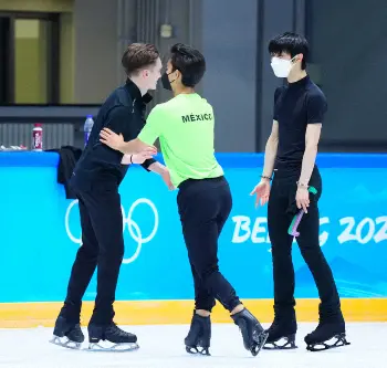 ▽15:59 他スケーターとの写真撮影にも応じ、リンクを離れる。