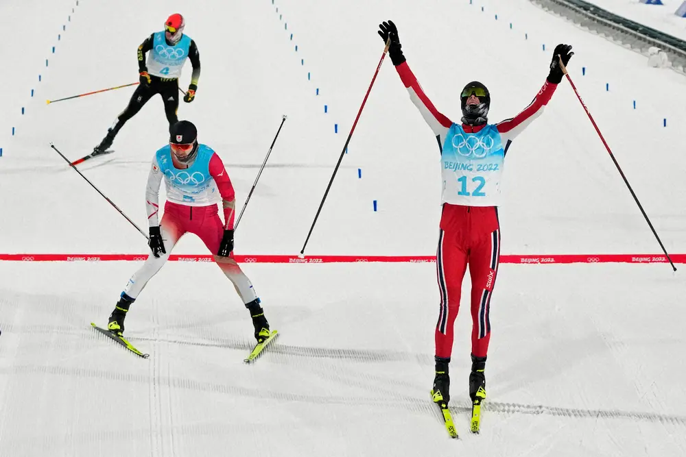 2・5キロの4周の周回で行うコース。1周目の終わりに首位のリーベル(ノルウェー)がコースを間違えるアクシデントもあり、渡部は3・5キロでトップに立った。実は個人ノーマルヒルでは、標高が高く、タフなコースの距離で4位タイのタイムで粘り強さを見せ「いい走りができた」と手応えをつかんでいた。ラスト1周、集団から早めにスパートをかけ、最後はノルウェー2選手との直線勝負となったが、金メダルのグローバク(ノルウェー)までわずか0・6秒及ばなかった。