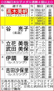 ◇五輪日本女子メダル通算4個以上◇ Photo by スポニチ 菜那まさかの転倒、号泣…女子団体追い抜き銀メダル 美帆は日本女子最多6… ギャラリーで見る この記事のフォト 2022年02月16日の画像一覧 もっと見る 2022年02月16日の画像をもっと見る
