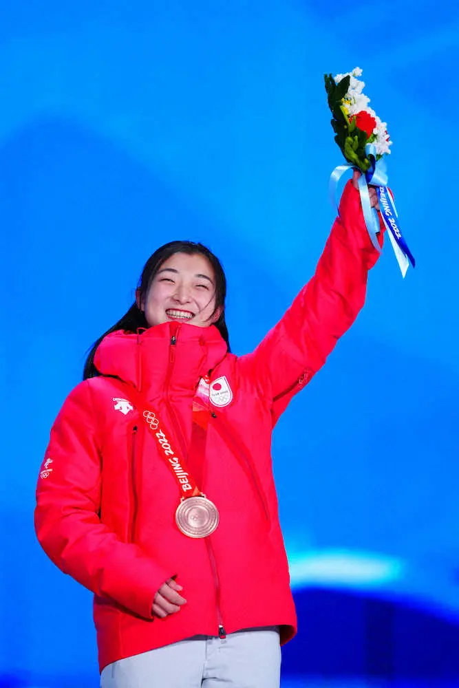 SP、フリーともに自己ベストをそろえて3位に食い込み、日本女子にとっては10年バンクーバー五輪銀の浅田真央以来となるメダルを手にした坂本。同日にスピードスケート1000メートルで金メダルを獲得した高木美帆も居合わせたメダルセレモニー。