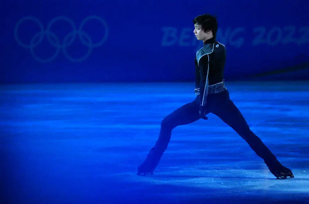 <北京五輪 フィギュア>エキシビションの練習に臨む羽生結弦(撮影・小海途 良幹)