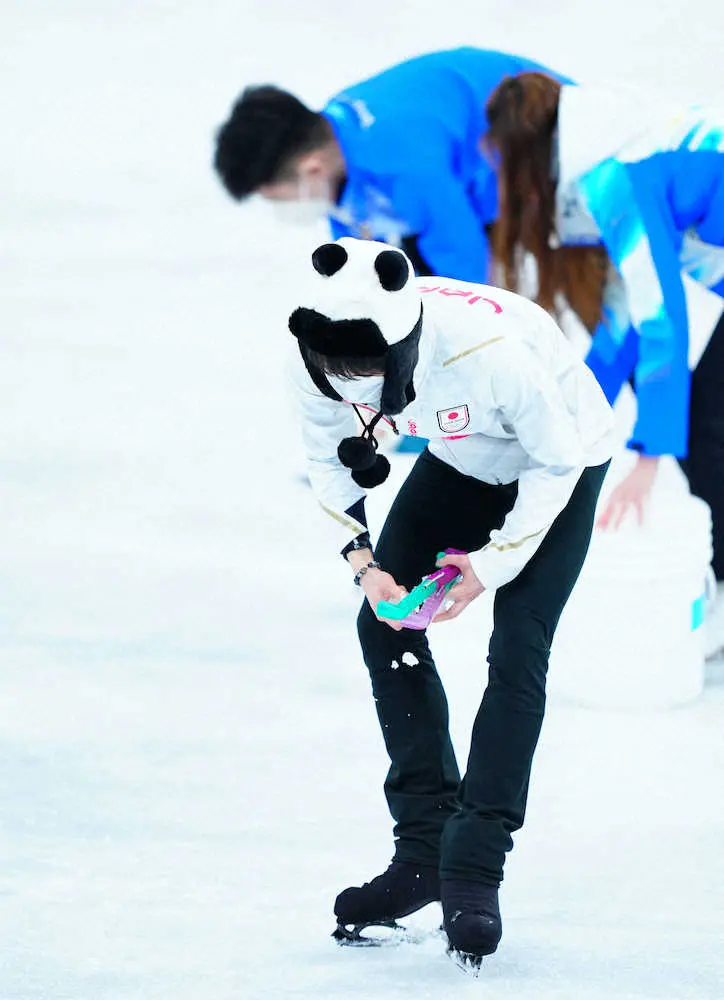 <北京五輪 フィギュア>製氷を手伝う羽生結弦(撮影・小海途 良幹)