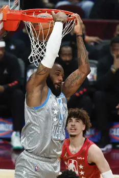 今回はチーム・キャプテンでもあるケビン・デュラント(33=ネッツ)のほか、ジェームズ・ハーデン(32=76ers)、ドレイモンド・グリーン(32=ウォリアーズ)に加え、ドノバン・ミッチェル(25=ジャズ)も呼吸器疾患で直前になって欠場。“欠員”の多い中での球宴開催となった。