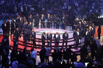 ハーフタイムではリーグ発足75周年を記念してメディア、選手、コーチ、球団幹部らの投票で決まっていた故コービー・ブライアント氏(元レイカーズ)を含む「NBA歴代ベスト75」の76人が紹介され(同点者2人)、マイケル・ジョーダン氏(59)、カリーム・アブドゥルジャバー氏(74)といったNBAを代表するレジェンドたちが一堂に会した。