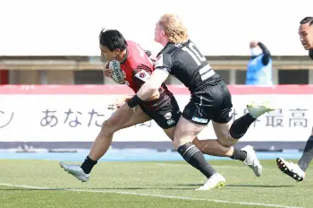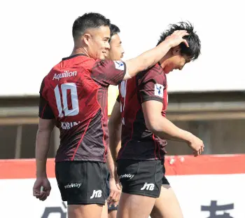 <BR東京・横浜>先制のトライの横浜・松井(右)を祝福する田村(撮影・光山 貴大) Photo by スポニチ 横浜5勝目 田村のキックで主導権 松井2トライも「修正したい」 ギャラリーで見る この記事のフォト 2022年02月28日の画像一覧 もっと見る 2022年02月28日の画像をもっと見る