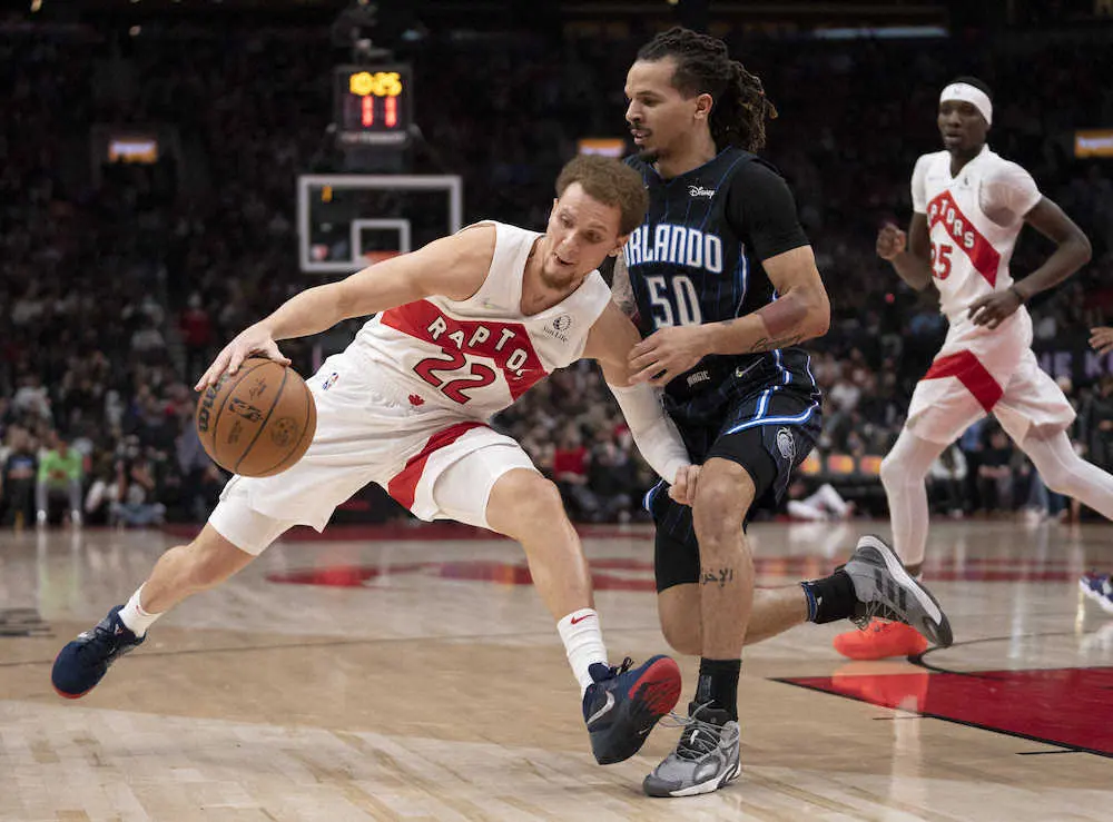 NBA東地区全体7位のラプターズは4日、地元トロント(カナダ・オンタリオ州)で東地区全体最下位のマジックに97―103(前半39―48)で敗れて34勝29敗。前日には同14位のピストンズに2点差で敗れており、下位2チームとのホームゲームをいずれも落とした。