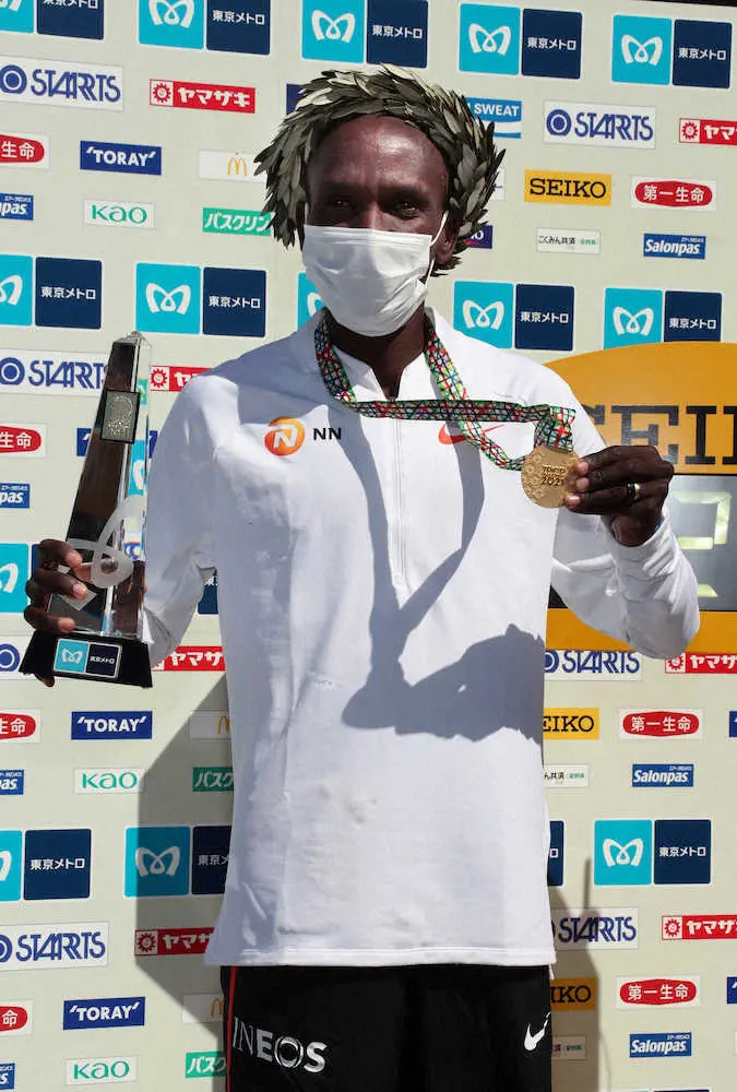 五輪2連覇の男子世界記録保持者エリウド・キプチョゲ(37=ケニア)が大会記録を1分18秒も更新する日本国内最高タイムの2時間2分40秒をマークし、初出場初優勝を飾った。