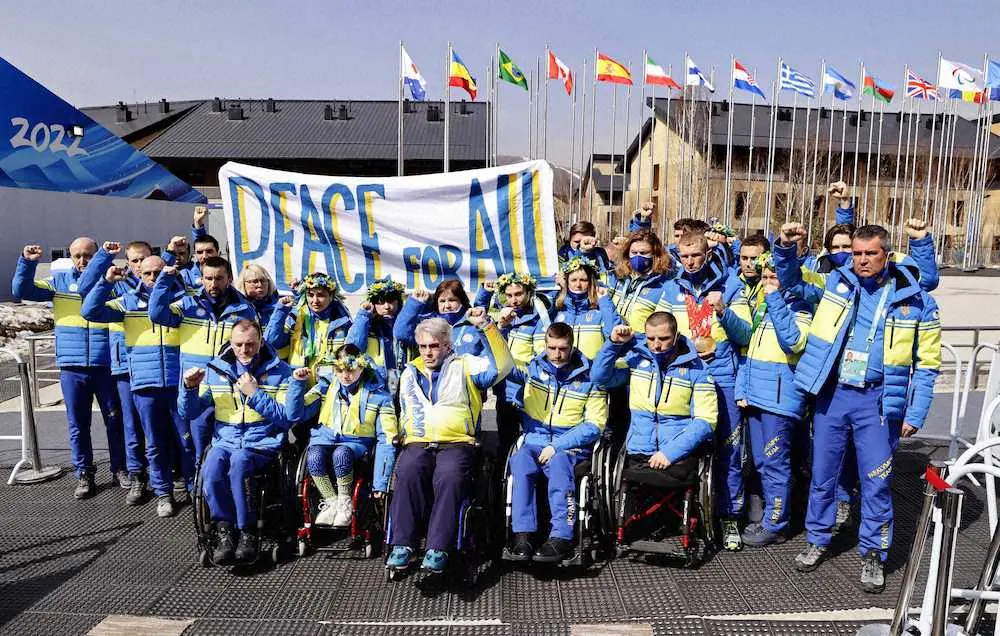 選手団が大会期間中、政治的なメッセージを表明するのは異例。ウクライナ・パラリンピック委員会のスシケビッチ会長ら約30人が拳を突き上げ、約1分間黙とう。同氏は「皆さん、私の国で起こっているひどい戦争に目を向けてほしい。多数の犠牲者が出ている。子供や女性が生き延びるために、(国際社会の)団結が必要だ」と訴えた。