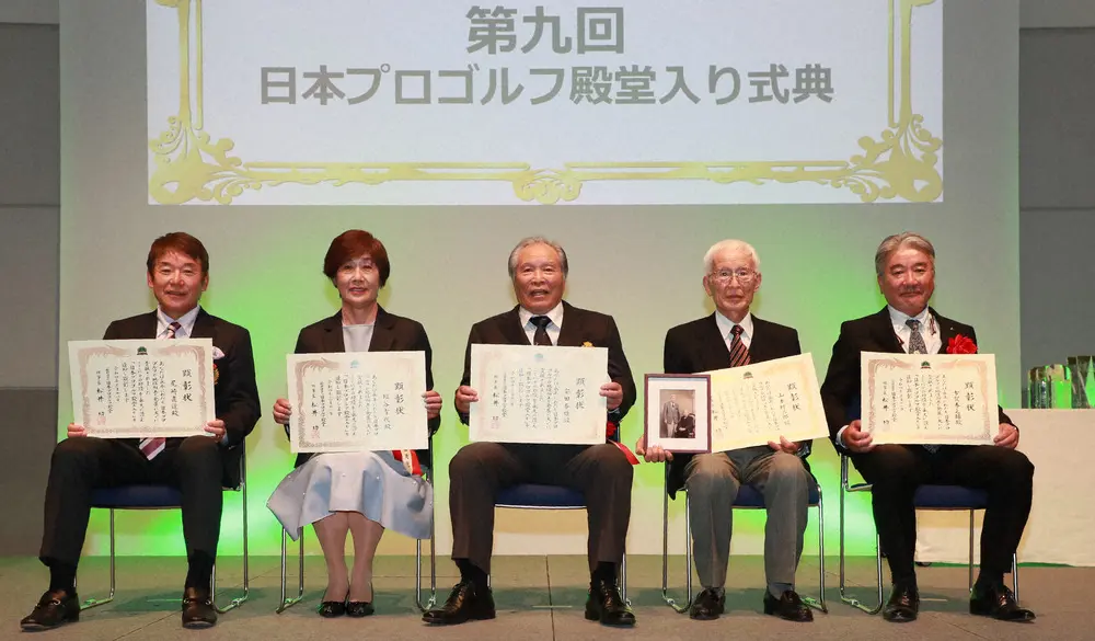 日本プロゴルフ殿堂(松井功理事長)の第8、9回の殿堂入り式典が11日、横浜市のパシフィコ横浜で行われた。