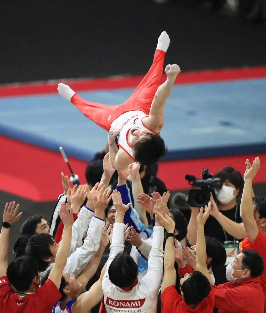 昨夏の東京五輪は種目別の鉄棒に絞って出場したが、この日はこだわりを持っていた個人総合と同じ6種目を演技。床運動で最後の3回ひねりの着地を鮮やかに止めると、あん馬を落下せずにクリアし、つり輪は両肩の痛みに耐えた。