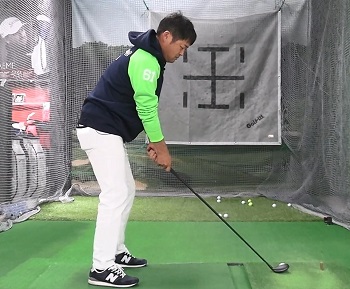 UFOスピードを試打した横田は「非常に良いものができ上がった。開発者の魂がこもった素晴らしい仕上がりです」と感心した。