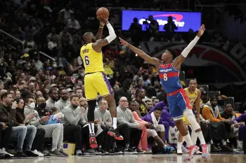 レイカーズは30勝41敗。11日のウィザーズ戦で50得点を記録していたレブロン・ジェームズ(37)は前半での23得点を含む38得点。第2Qの4分9秒、この日3本目の3点シュートを決めたところで19得点となり、通算では3万6928得点となって歴代2位のカール・マローン(元ジャズほか)に並んだ。そしてこのクオーターの6分40秒、右サイドからカットしてスタンリー・ジョンソン(25)からのバウンズパスをもらうと、八村らをかわしてゴール下でシュートを決めて“マローン超え”を達成。敵地ながらウィザーズの本拠地「キャピタル・ワン・アリーナ」の観客はスタンディング・オベーションでその快挙を称えた。