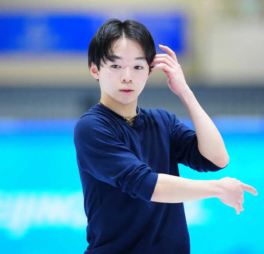 練習前には父・正和コーチの撮影による記念写真を撮り、カナダのキーガン・メッシングと2人で練習をスタート。SPの曲かけではジャンプは跳ばなかったが、その後は4回転サルコーやトリプルアクセル、トーループの4回転―3回転などを着氷した。