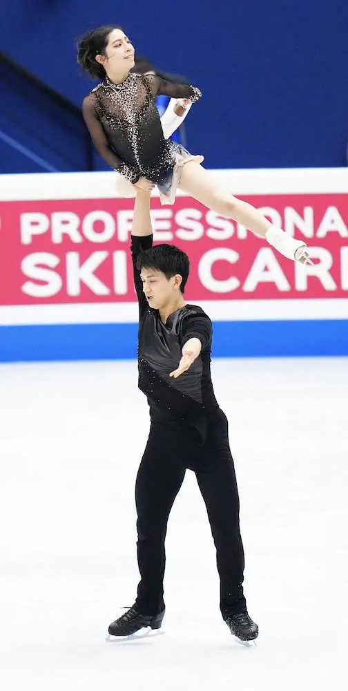 <世界フィギュア2022 ペアフリー>演技する三浦璃来&木原龍一(撮影・長久保 豊)