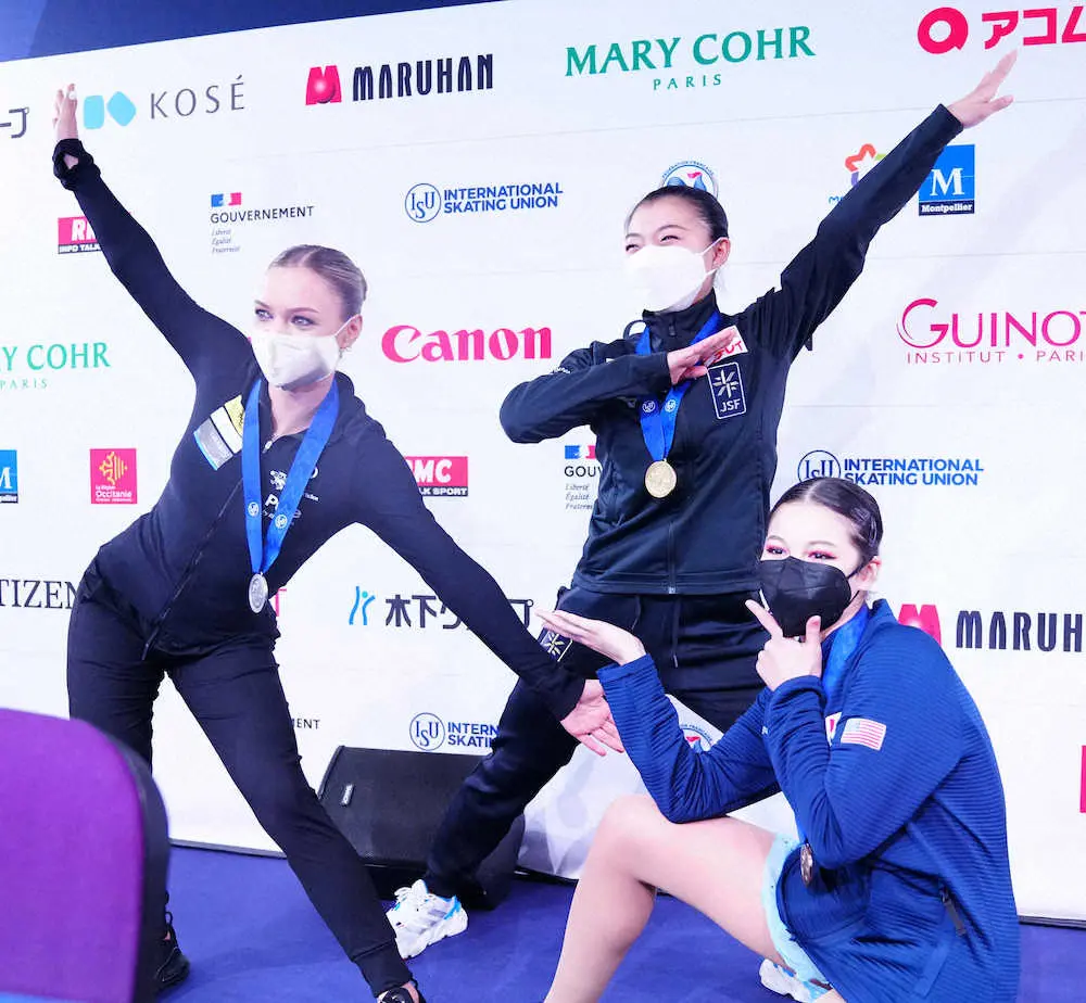 <世界フィギュア2022 女子フリー>表彰式を終え国旗を翻す左からヘンドリクス、坂本、リウ(撮影・長久保 豊) Photo by スポニチ 坂本花織 世界選手権初Vで君が代に涙「どうなるのか不安でいっぱいだった… ギャラリーで見る この記事のフォト 2022年03月26日の画像一覧 もっと見る 2022年03月26日の画像をもっと見る