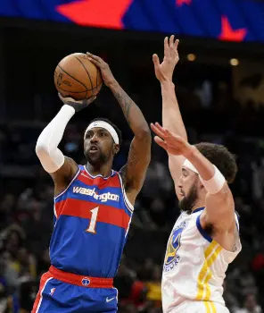 NBA東地区全体12位のウィザーズは27日、地元ワシントンDCで西地区全体3位のウォリアーズと対戦。最大18点差(第2Q8分1秒=57―39)を大詰めで5点差にされたものの、一度もリードを許すことなく123―115(前半59―51)で勝利を収めて今季の成績は32勝42敗となった。