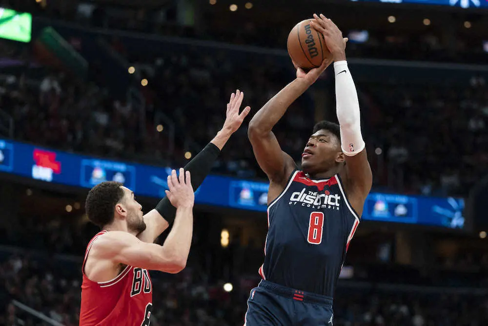 6試合連続の先発となった八村塁(24)は今季最長となる31分の出場でフィールドゴール(FG)を10本中8本(うち3点シュートは3本中2本)成功。第3Qにはこの日2本目の3点シュートや、速攻からのリバース・レイアップなどで11得点を記録し、第4Qの5分3秒、左コーナーからのドライブでゴール下でシュートを決めたところで21得点目。2月17日のネッツ戦でマークしていた今季の自己最多記録(20)を上回った。27日のウォリアーズ戦では6得点に終わっていたが、2ケタ得点は今季22回目でFG成功本数は今季自己最多タイ。今季平均は10・4得点で、3点シュートの成功率は46・8%となった。
