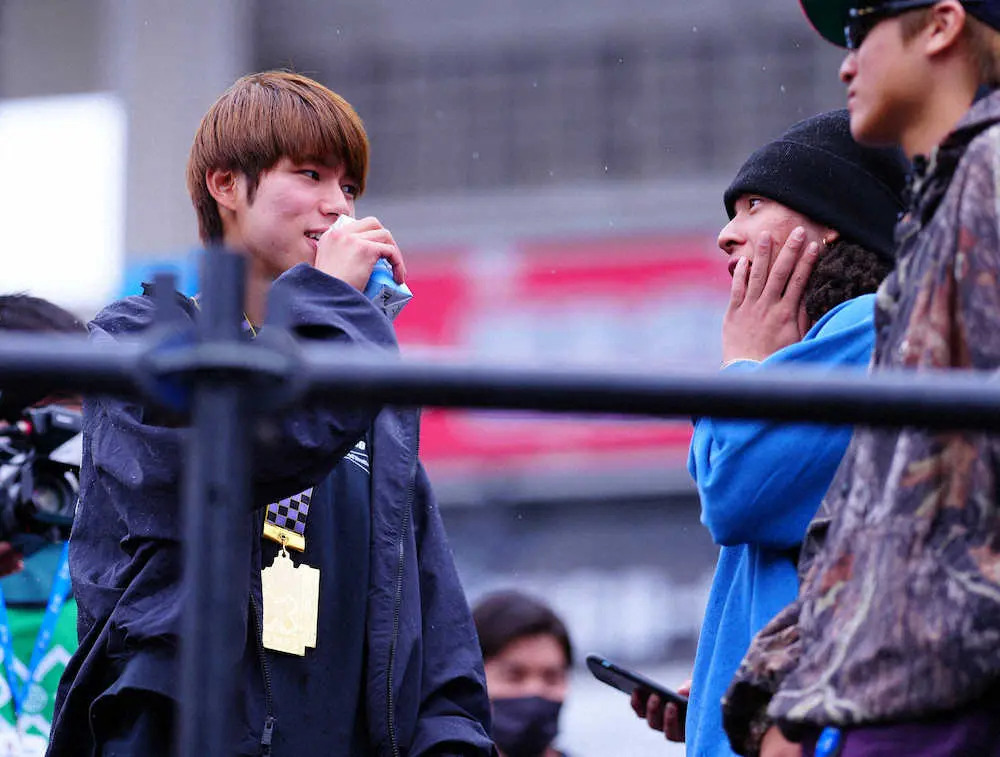 <Xゲーム最終日>スケートボード男子ストリート決勝、優勝した堀米雄斗(左)は平野歩夢と話をする(撮影・小海途 良幹)