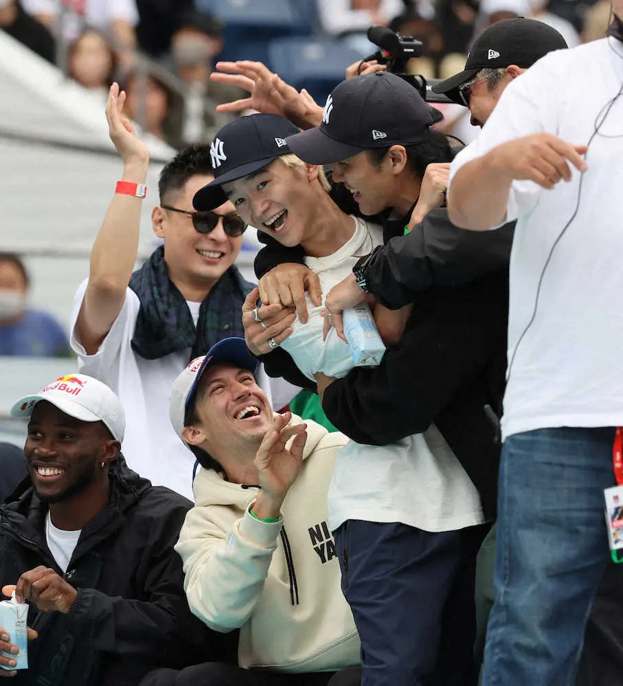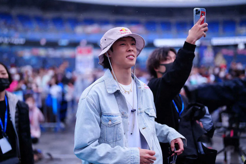 <Xゲーム最終日>スケートボード男子ストリート決勝、熱戦を見つめる小林陵侑(撮影・小海途 良幹)