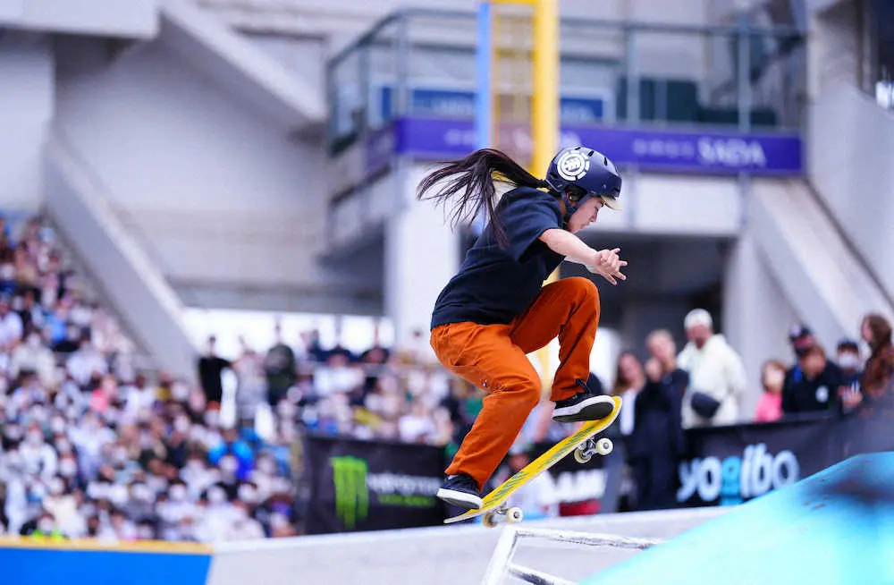 <Xゲーム最終日>スケートボード女子ストリート決勝、2位に入った中山楓奈(撮影・小海途 良幹)