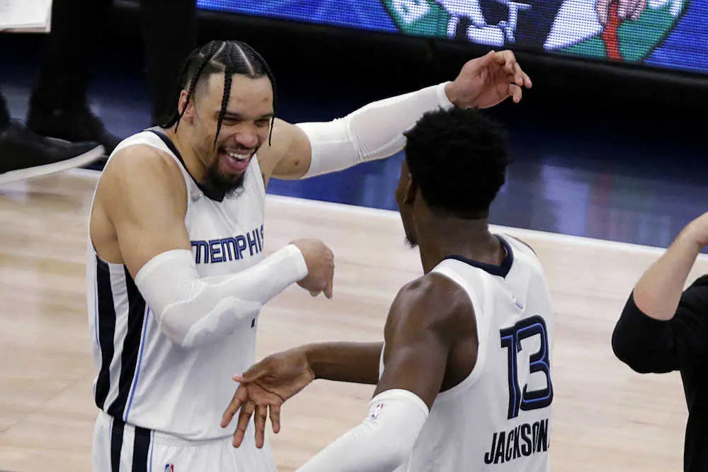 ディロン・ブルックス(26)とデズモンド・ベイン(23)がそれぞれ23得点をマークし、最も成長した選手に贈られるMIPを受賞したジャー・モラント(22)が17得点と8リバウンド、11アシストを記録。第3Q終了時点で10点を追う展開だったが、第4Qを40―22として試合をひっくり返した。